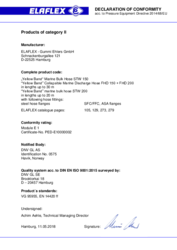 ELAFLEX has been certified according to this directive by the DNV GL. This permits ELAFLEX to mark products of the categories I and II with the "CE" sign and to issue conformity declarations.