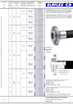 clamps of aluminium (other materials on request) or swaging ferrule. - Swivelling flange according to EN ISO 1092-1 Type 04/34 A or ASME B16.5.